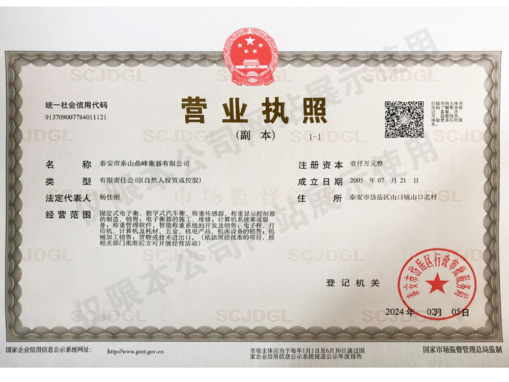 歡迎訪問“泰安市泰山鼎峰衡器有限公司”官方網站!